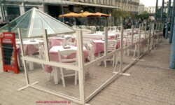 Τα διαχωριστικά προτείνονται και κατασκευάζονται για την περίφραξη και την αντιανεμική προστασία του εξωτερικού χώρου των καταστημάτων , cafe ,εστίασης, ξενοδοχεία κ.λ.π από τις καιρικές συνθήκες έτσι ο εξωτερικός – υπαίθριος χώρος του καταστήματος να είναι σε κάθε εποχή του χρόνου παραγωγικός και έτοιμος να προσελκύσει τους πελάτες.